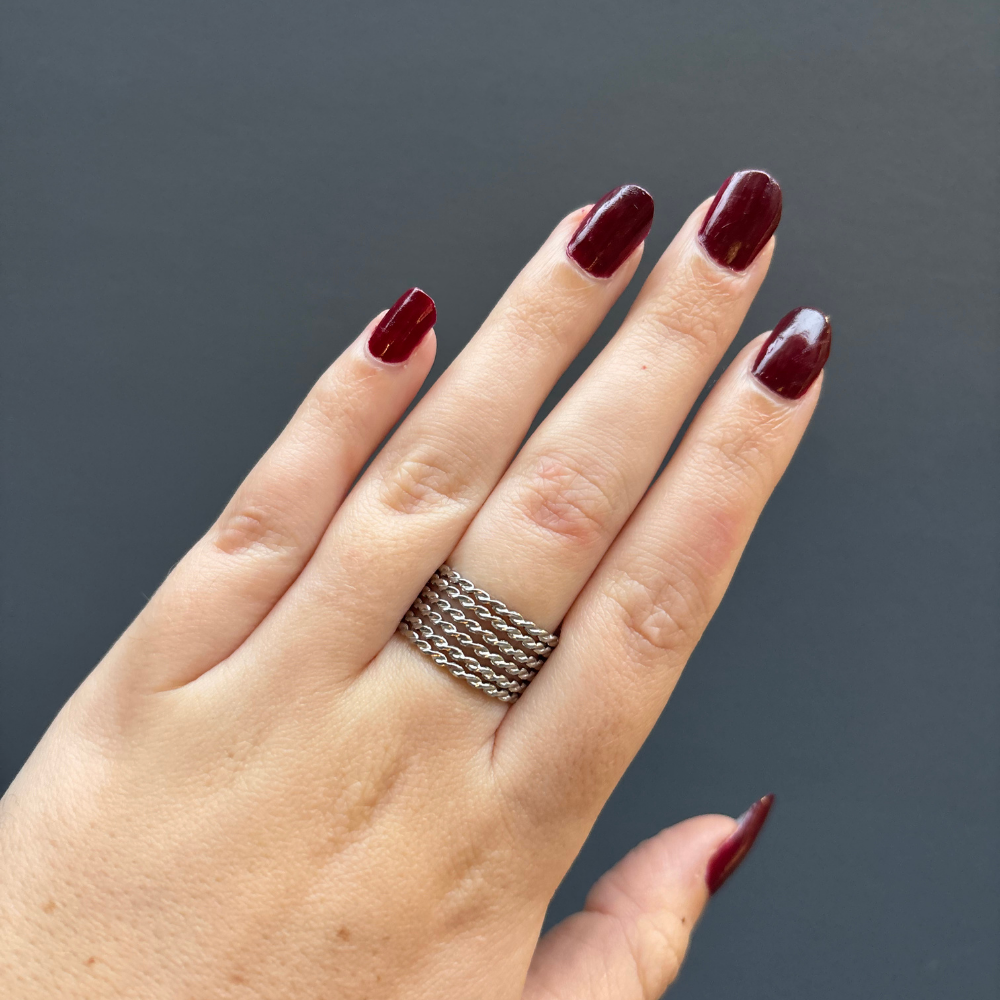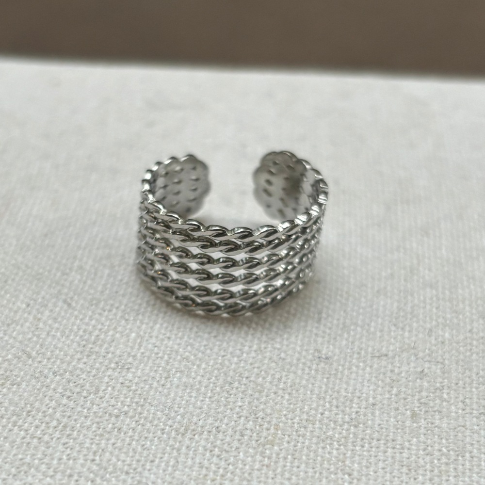 La bague Élia se porte aussi bien seule, pour un effet chic et minimaliste, qu’associée à d’autres bijoux argentés pour un look plus affirmé.