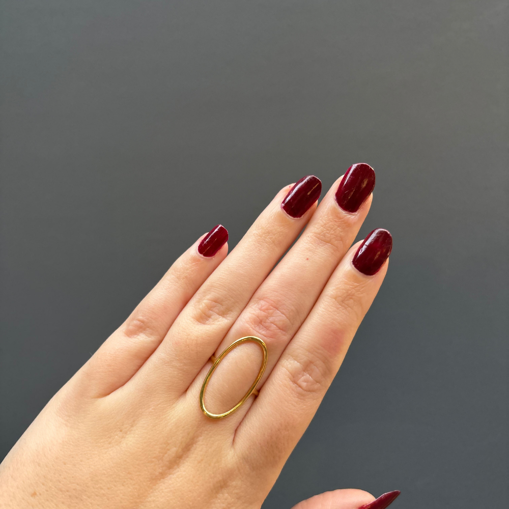 La bague Éline se porte seule pour un look minimaliste ou associée à d’autres bagues dorées pour un effet plus audacieux.