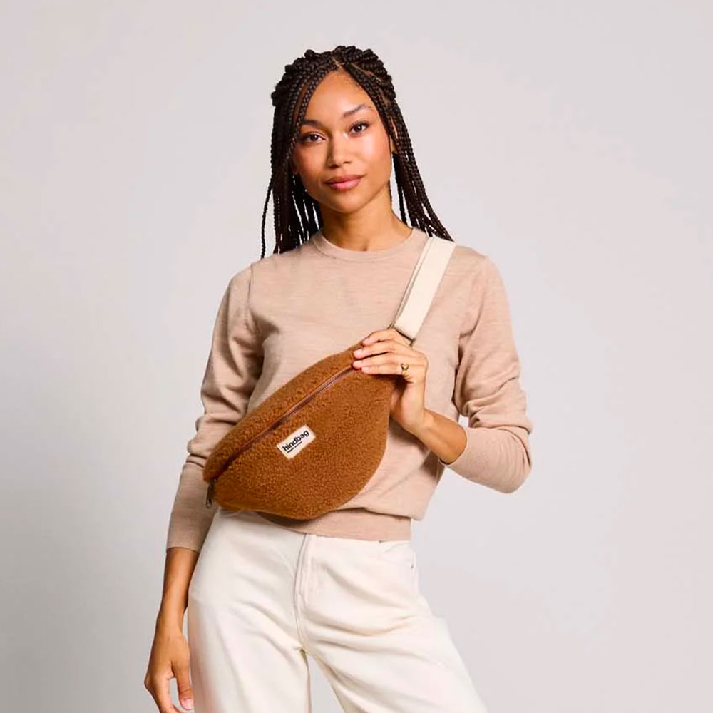 Conçu en fausse fourrure « Teddy » labellisée Global Recycled Standard (GRS), ce modèle unisexe signé Hindbag séduit par sa douceur, sa robustesse et son design.